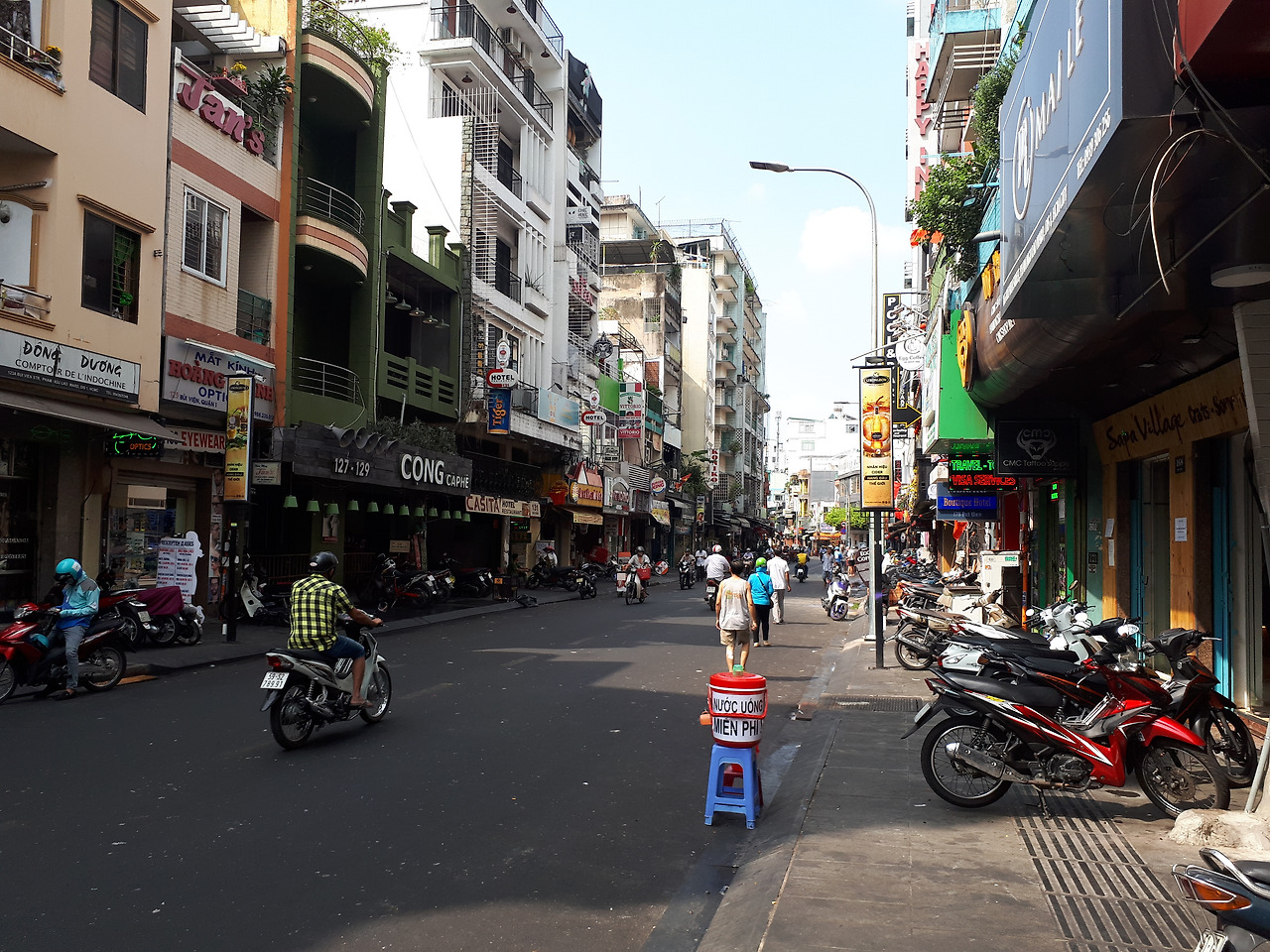 프랑스 식민정치를 받았던 호치민에는 프랑스 양식의 건축물이 눈에 자주 들어온다. 그리고 1층 상가는 사람이 지나다니는 인도를 점령한 채 테이블이 놓여져 있다. 마치 파리 라인강 유역을 따라 늘어선 카페처럼.