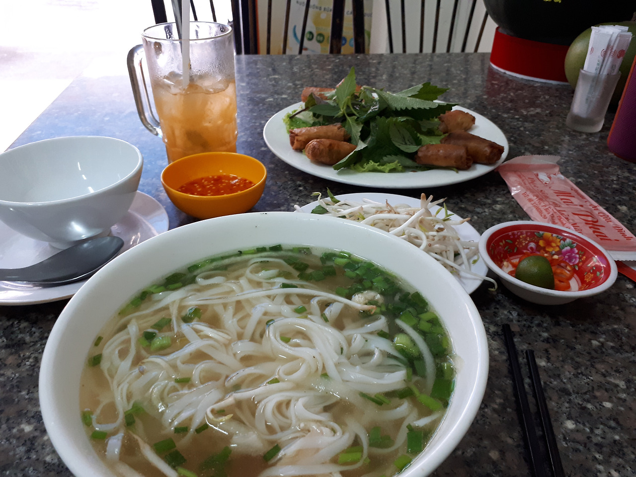 나는 쌀국수와 베트남식 만두튀김인 넴 그리고 음료수를 주문했다.