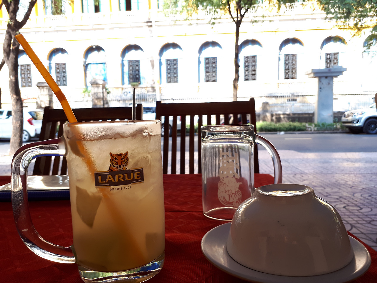 따가운 햇살을 피해 눈에 보이는 카페 안으로 피신했다. 예쁜 카페를 찾으려고 했지만 무더위를 참을 수 없었다. 난 카페쓰어다(베트남 연유커피) 한 잔을 시키곤 테라스에 앉았다.