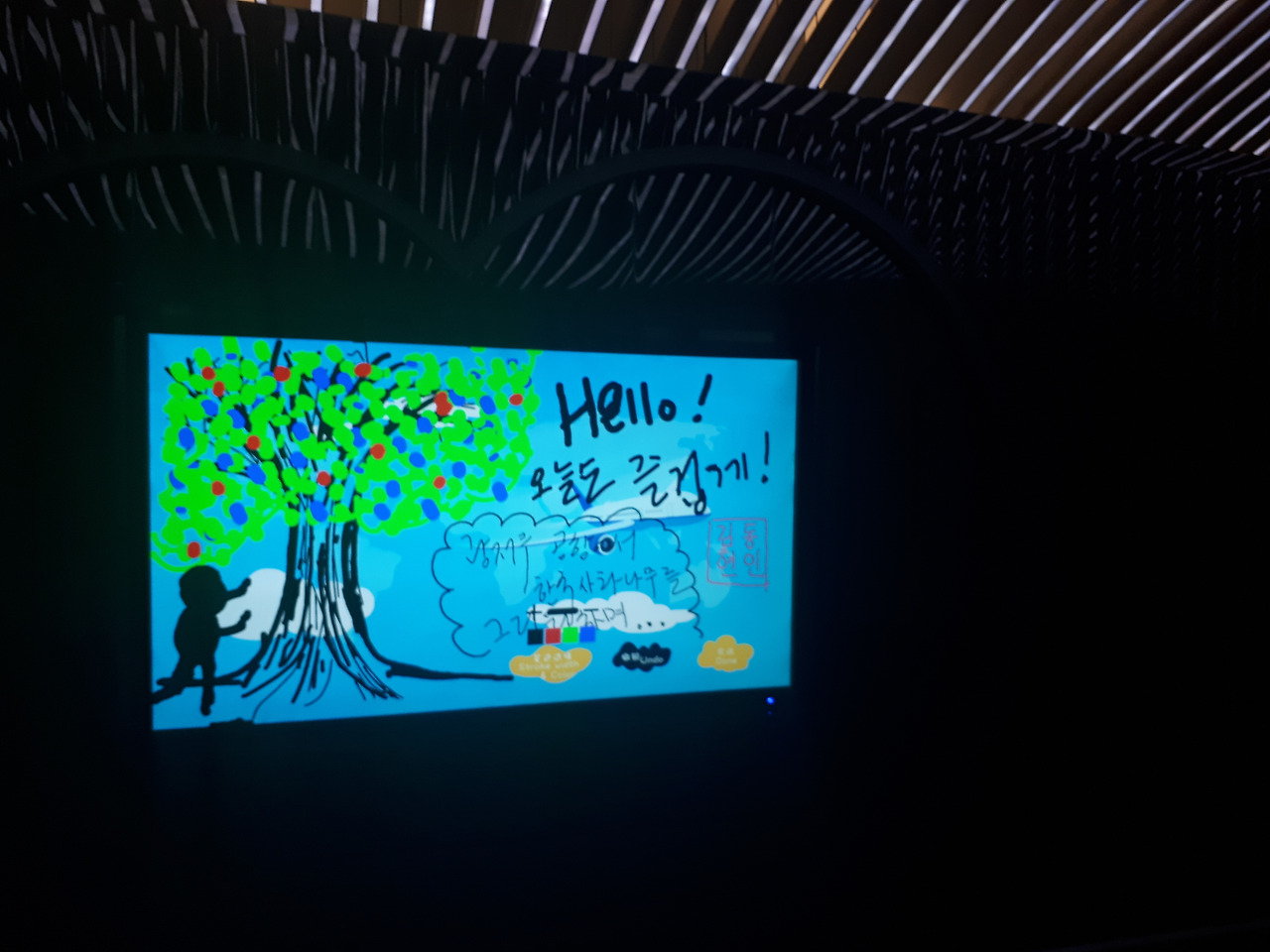 그때, 대형 전광판을 발견했다. 뭔가를 그릴 수 있는 전광판.