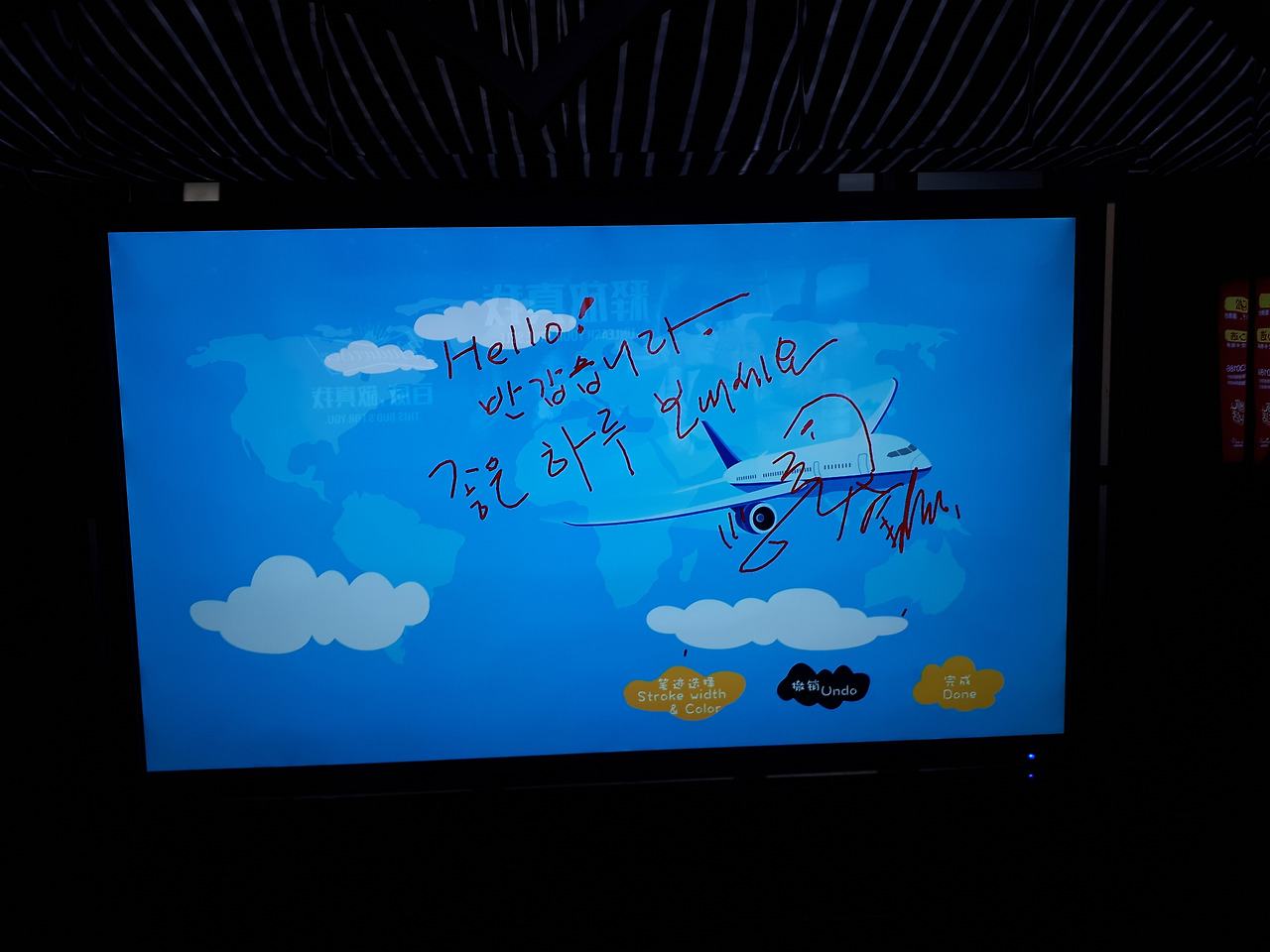 내가 전광판에다가 한국말을 적고 있으니 지나가던 중국인들이 웃으며 쳐다봤다.