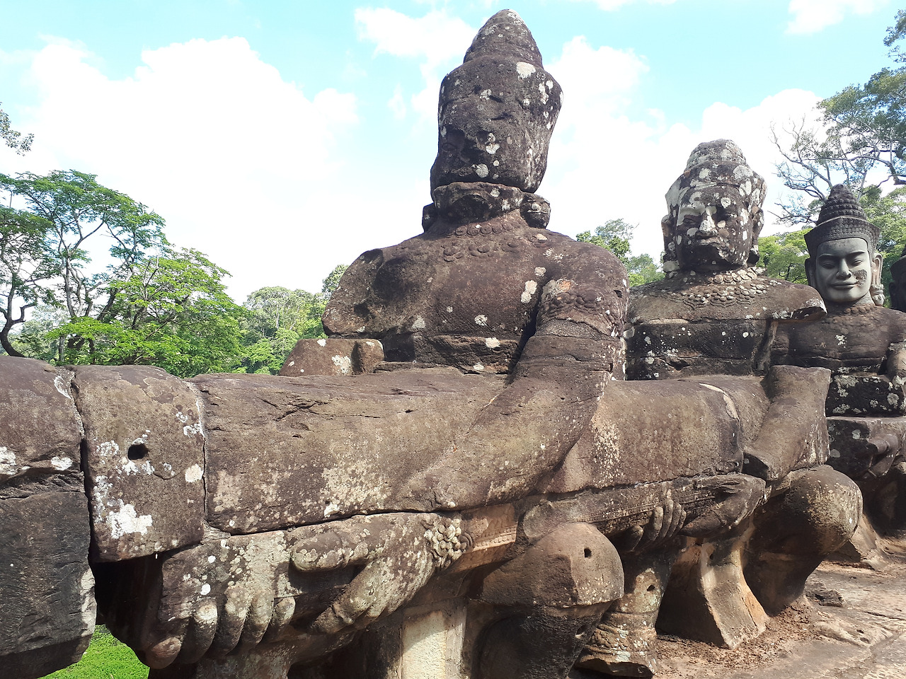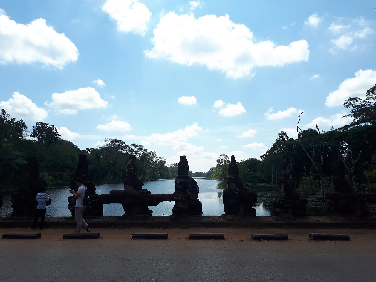 앙코르 톰의 남문 앞엔 해자와 다리가 있다. 이를 건너면 진정 신이 살고 있는 세계를 만날 수 있을 것이다.