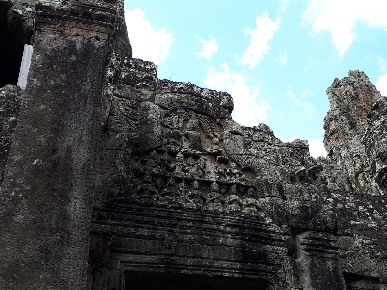 그리고 첫 감동은 거대한 규모보다 세밀한 꼼꼼함에서 표출하는 그 화려함에서 왔다. 돌 하나하나 조각되지 않은 것이 없었다. 그 뜻은 사람의 손길이 대충 흘러나갔을 돌덩이가 하나도 없었다는 것이리라.