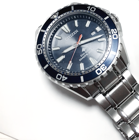 시티즌 에코 드라이브 프로 마스터. 전문 다이버가 사용 가능한 수준의 200M 방수 능력을 보유하고 있으며, 냉장고 근처에서 작용하는 자성에 견딜 수 있는 항자성을 겸비하고 있다.