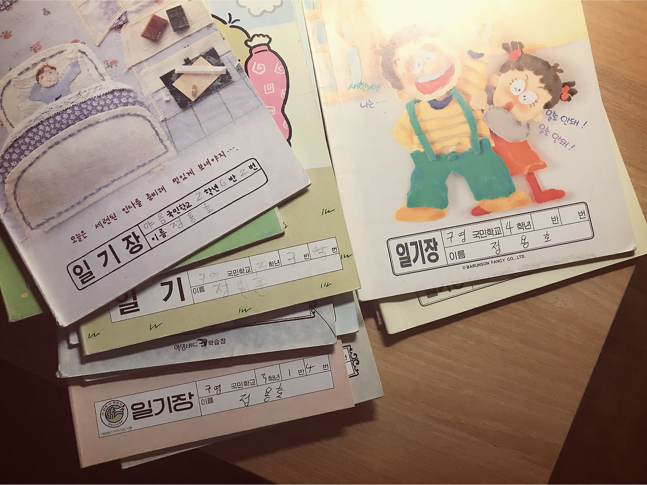 초등학교 4학년까지 일기장이 상자에 고스란히 남았다. 글씨는 갈수록 엉망진창이다. '반복되는' 일상을 '억지로' 기록하려니 더욱 그랬던 모양이다. "글씨를 예쁘게, 내용을 알차게 써 보자" 같은 담임선생님의 메모도 간간이 눈에 띈다. 언젠가 이 일기장을 아내와 함께 본 적이 있다. '텔레비전'을 'TV 전'이라고 쓴 걸 '들켜' 부끄러워했던 기억이 있다. 나는 지금도 글자를 많이 틀린다.