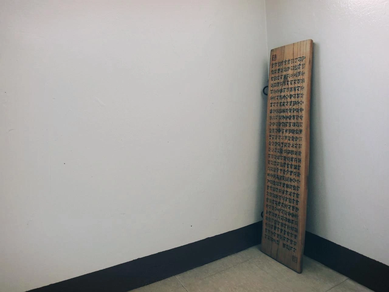 ‘색즉시공 공즉시색(色卽是空 空卽是色)’으로 유명한 <반야심경>을 새긴 현판이 계단실 중간에 버려져 있었다. 굳이 보고 외우지 않아도 앎과 행함이 일치하게 된 것일까? 마치, 지금 자신이 버린 현판은 사라지고 말 공이라고 주장하듯, 너무 반듯하게 세워진 게 어쩐지 우스웠다.