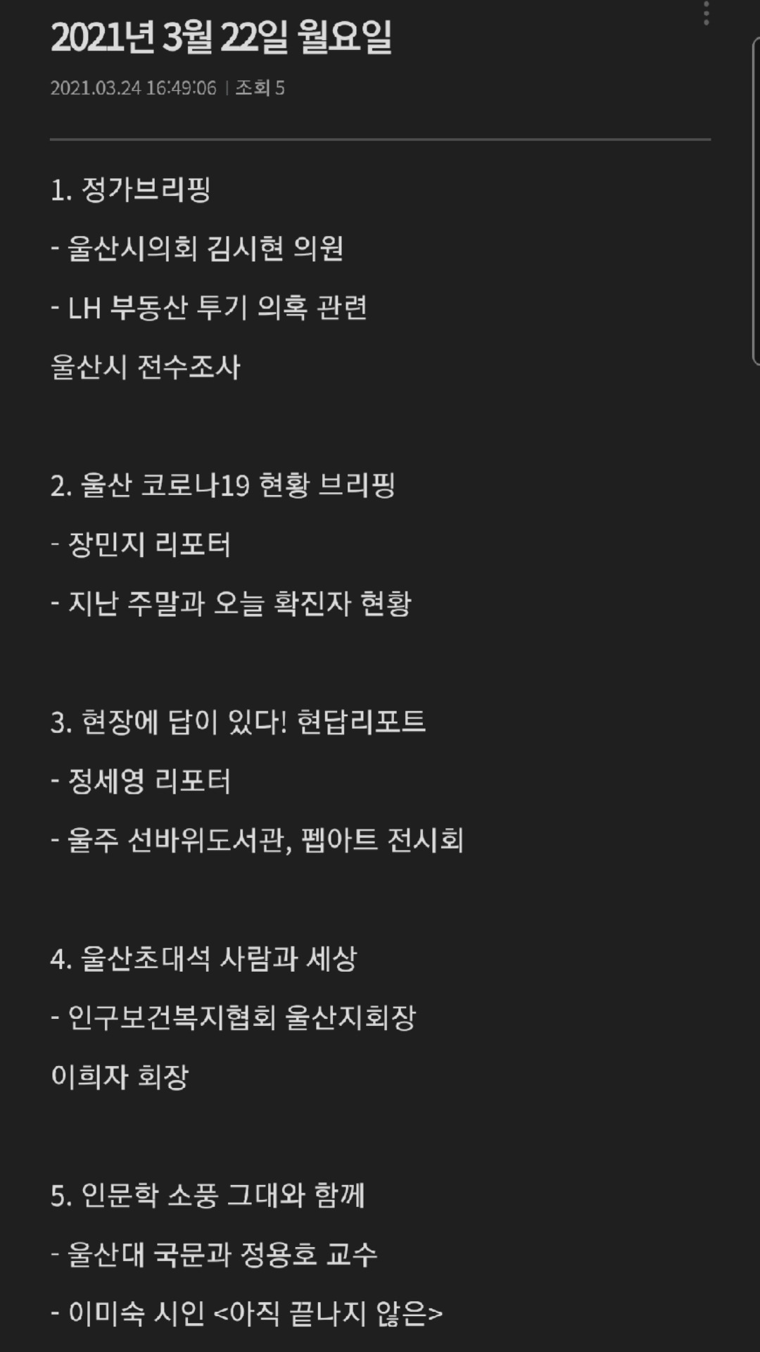*KBS 울산 <라디오세상 울산만사> 3월 22일 방송된 내용을 수정한 것. 안타깝게도 이날 방송에서는 원고 내용의 3분의 1가량을 내보내지 못했다.