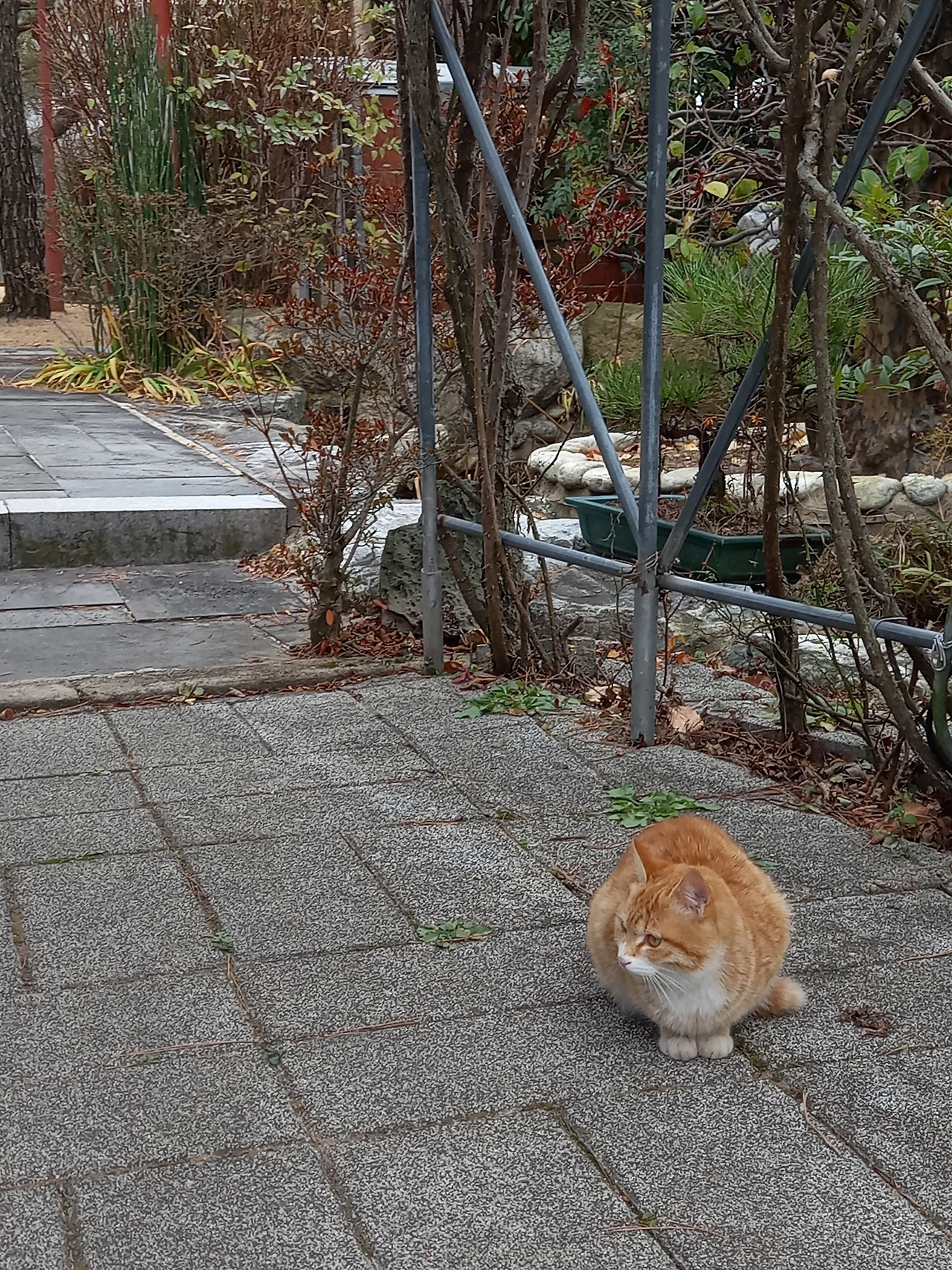 언제나처럼, 고양이 울음소리를 흉내 내며 "냐앙, 냥~"하면서 다가가 사진을 찍었다.