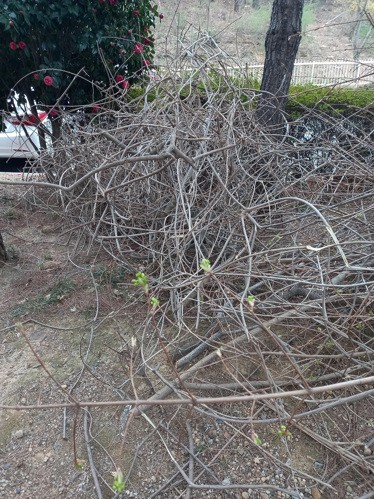 출근을 위해 돌아오는 길, 조경을 위해 잘라냈을 법한 가지들이 무덤처럼 쌓여 있었다. 잘린 가지를 보면 마음이 이상하다. 그런데 몇 개에는 새잎이 돋아 있었다. 나무로서는 억울하고 한 맺힐 법한 상황이 아닐까. 봄을 맞아 새 생명을 틔워내고 있는 중인데, 아랑곳없이 그것을 잘라내는 인간이라니. 그것도 분명 가로등이 가린다거나, 채광을 방해한다는 이유 때문이었을 것 같다. 따지 않은 감이 떨어져서 길이며 자동차가 더러워진다고 잘라낸 감나무처럼.