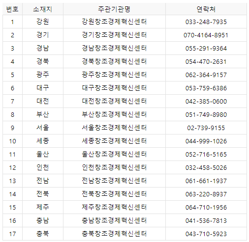 ○ (사업문의) 주관기관 - 지역별 창조경제혁신센터 사업담당자