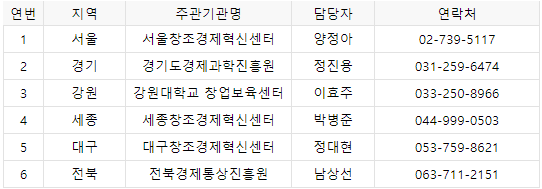 ○ K-Startup(신청·접수 문의) : 국번없이 1357