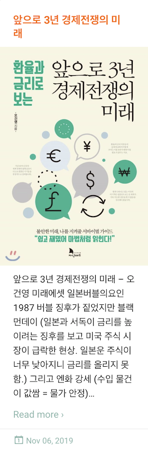 1. 앞으로 3년 경제전쟁의 미래 - 이 책 한 권으로 전혀 몰랐던 금리와 경제에 대해 이해를 하게 되었다. 나의 경제 지식은 이 책을 읽기 전과 후로 갈린다.