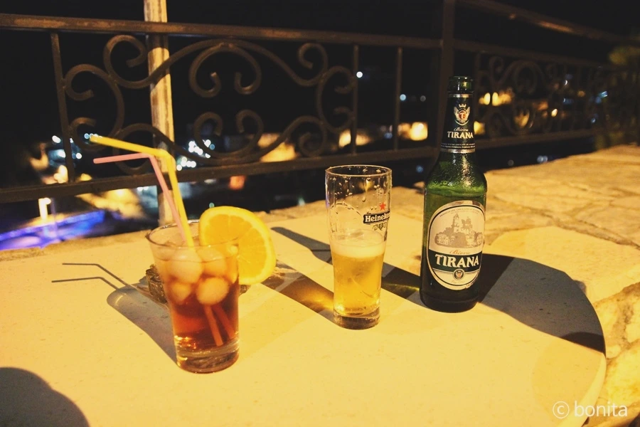 테라스에 앉아 칵테일 한잔을 마시며 반짝거리는 베라트의 마을을 바라본다.