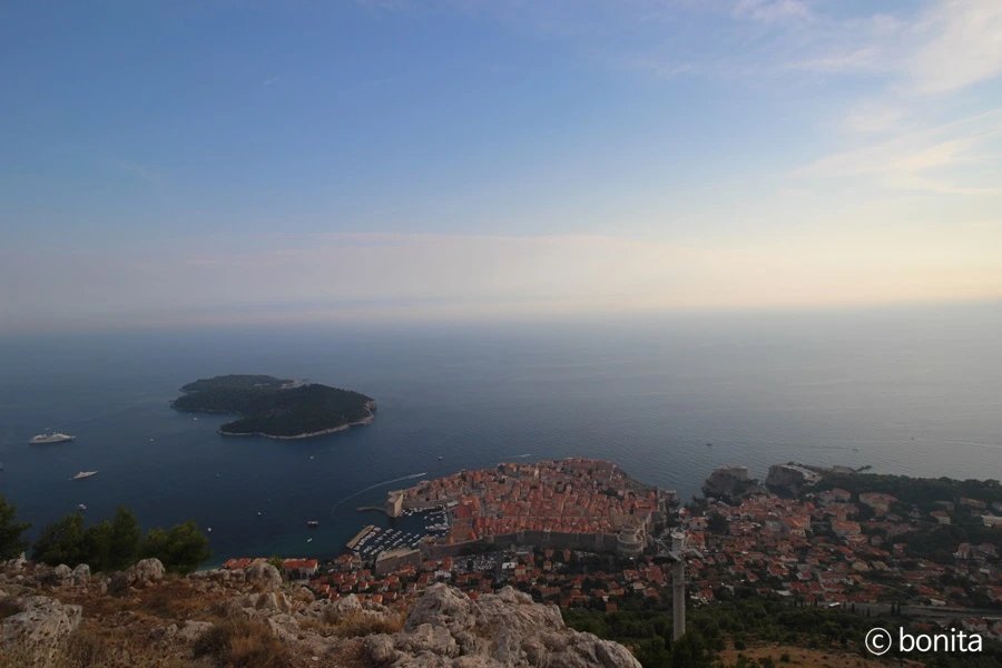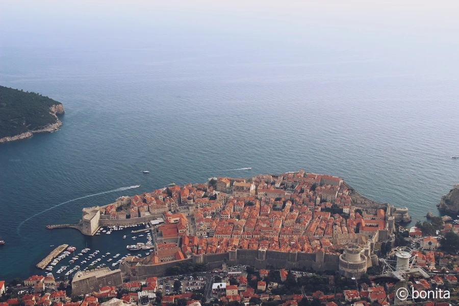위에서 바라보니 아드리아 해 사이로 두브로브니크의 올드타운을 감싸고 있는 성벽이 보인다.
