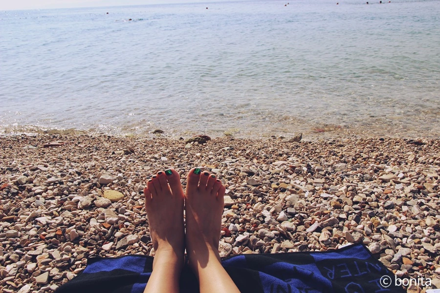 파라솔이나 썬베드는 없지만 머리 위로 뜨거운 햇살을 내뿜는 해를 바라보며 발을 뻗어본다.