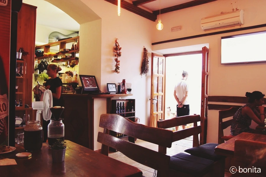 골목골목 사이의 푸르른 카페가 눈을 사로잡는다.