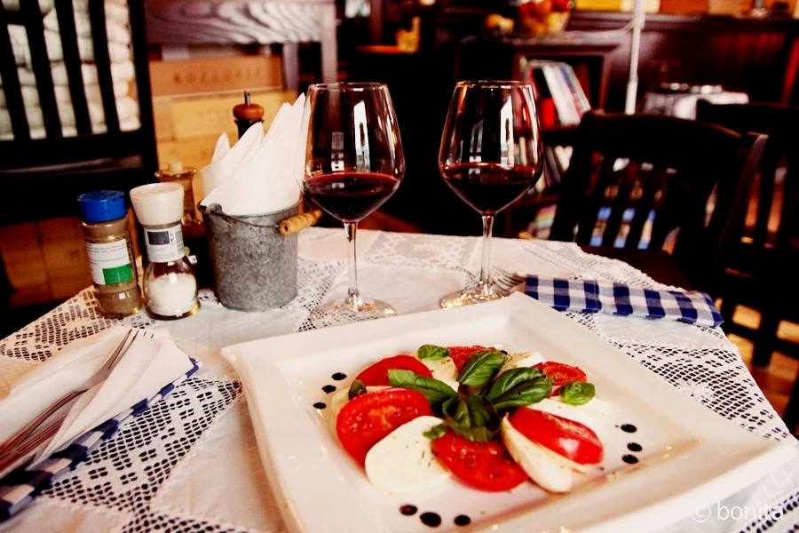 거기에 와인과 짝을 맞춰 줄 카프레제 샐러드 하나를 시킨다.