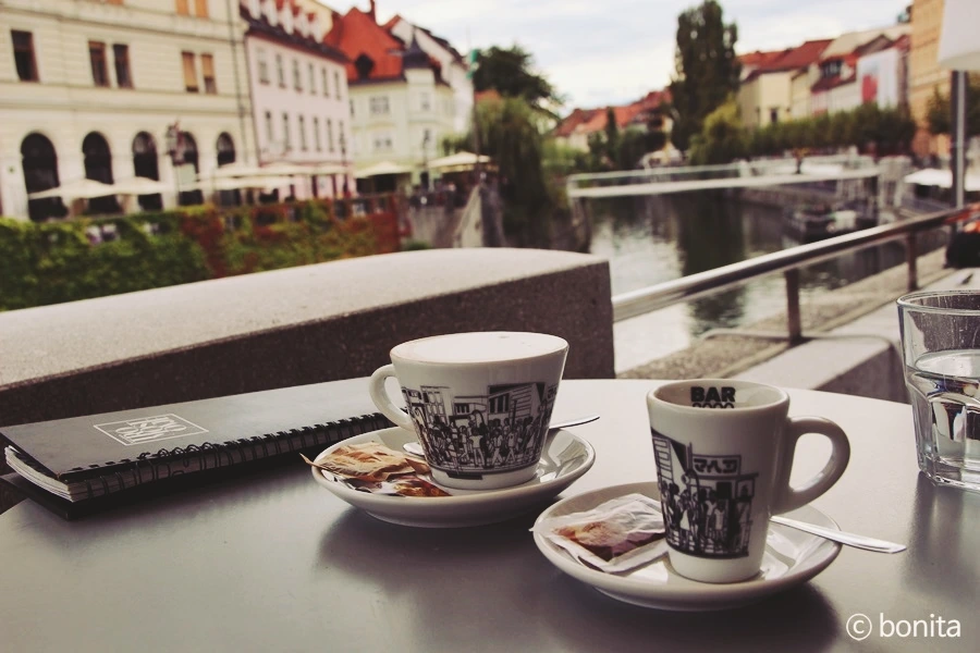 강이 흐르는 류블랴나를 바라보며 따뜻한 커피를 한 모금 마셔본다.