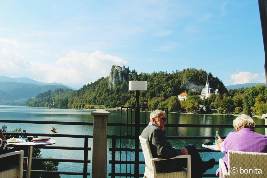 푸른빛으로 가득 찬 블레드 호수를 바라보며 마시는 커피 한 잔은 얼마나 달콤할까.