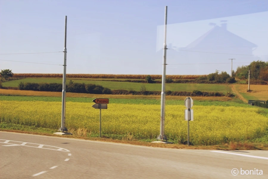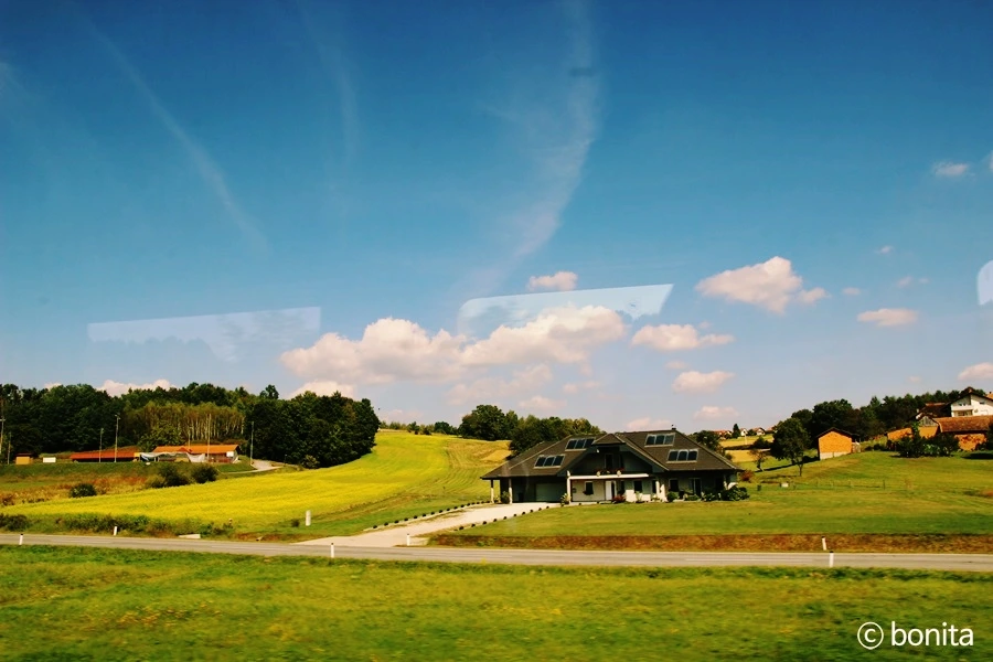 창밖으로 빠르게 지나가는 평온한 전원마을의 풍경들.