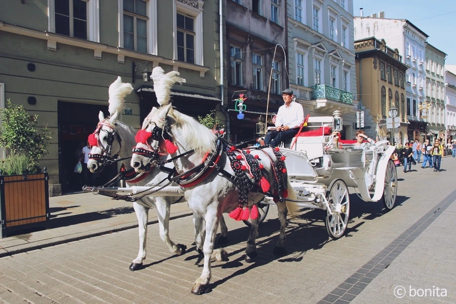 햇살이 반짝이는 오후 크라쿠프를 걷는다.