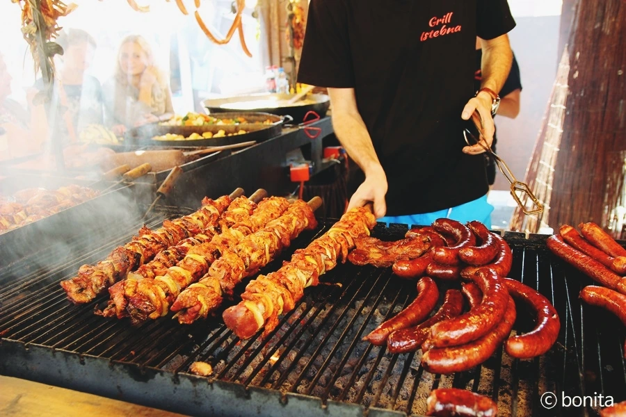 소시지와 다양한 바비큐를 구워내는 그릴 가게.
