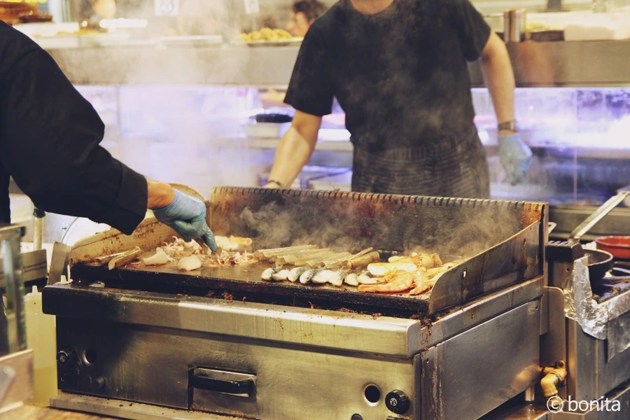뒷골목 언저리에 해산물을 즉석에서 구워내 주는 가게를 찾아 자리를 잡기로 했다.