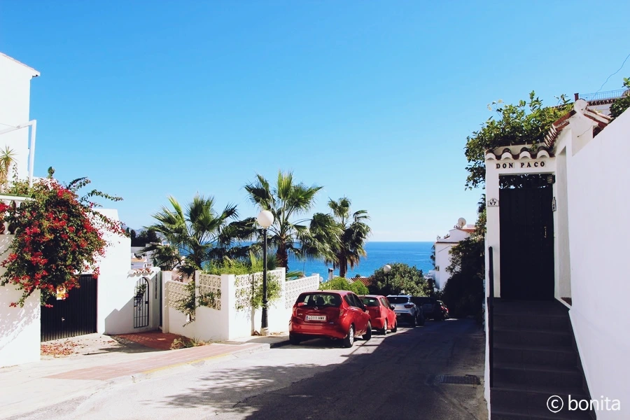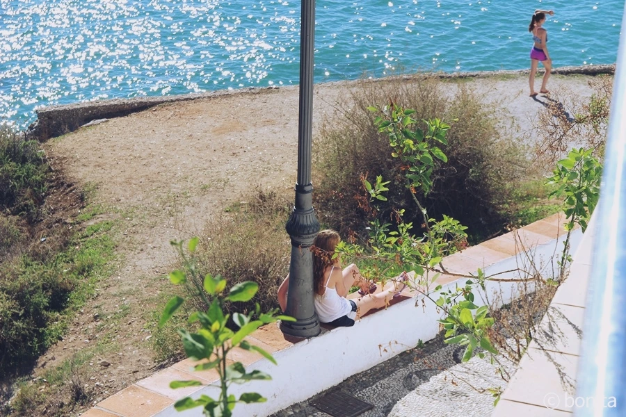 좁은 인도 사이에 놓인 기다란 도로 끝에는 반짝이는 지중해가 푸른빛을 품고 있었다.
