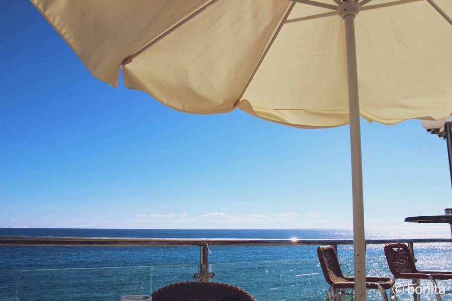 아쉬운 대로 바다가 잘 내려다보이는 바에 들어가
