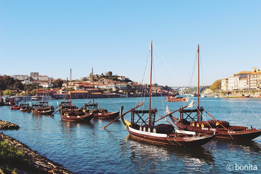 강물 위로는 포트와인을 담은 오크통이 한가득 실어진 배들이 줄지어 정박되어있다.