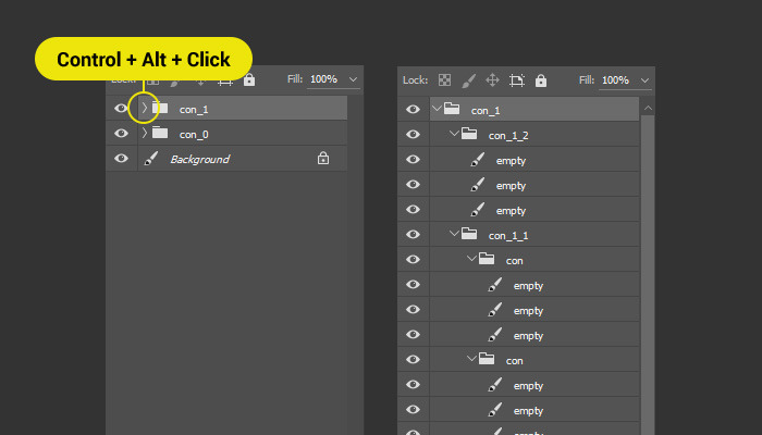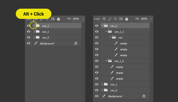 말 그대로 모든 그룹을 열고 닫는다. 최상위 그룹을 클릭해야 한다.