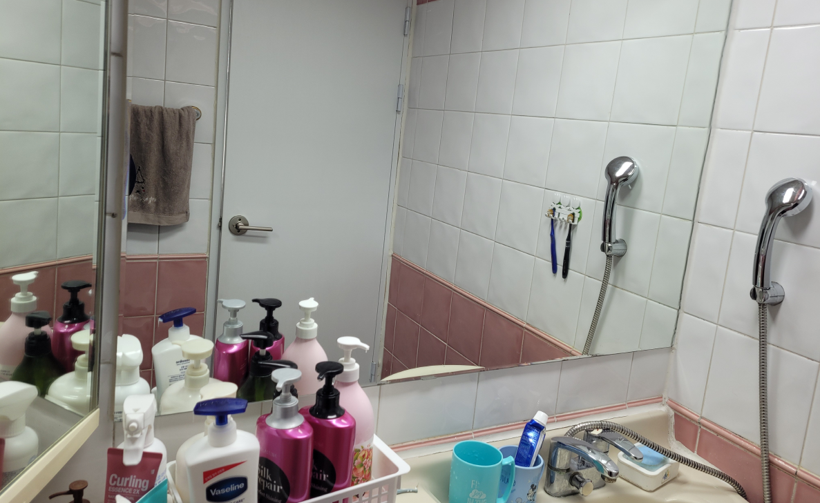 욕실의 거울 앞