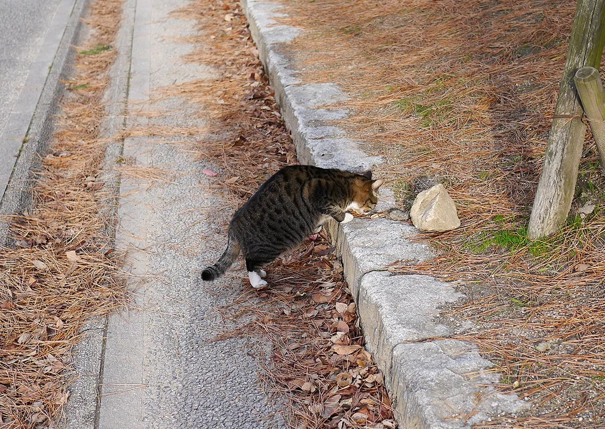 이 아이는 그물 위에 가만히 앉아 있었는데 가까이 다가가니 "냐아~"하고 작게 울었다. 우리나라의 길냥이들은 사람 발소리만 나도 도망가서 다가가기 쉽지 않은데 일본 길냥이들은 가만히 있는 것이 신기했다.