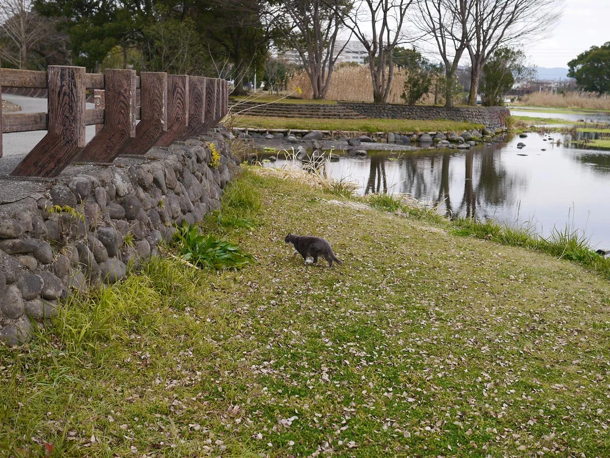 다음은 쿠마모토에서 만난 고양이. 쿠마모토에는 에즈코(江津湖)라는 호수가 있는데 그 주위를 걷다가 발견했다.