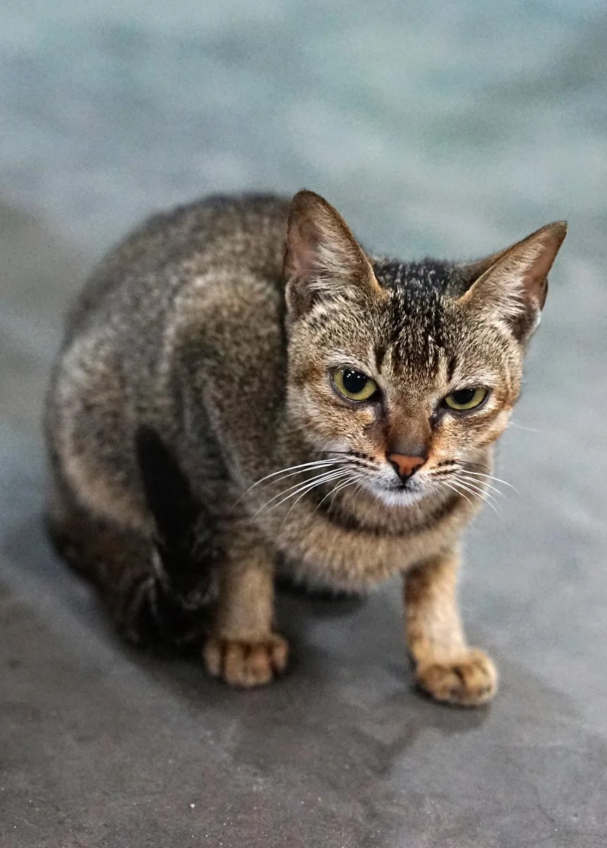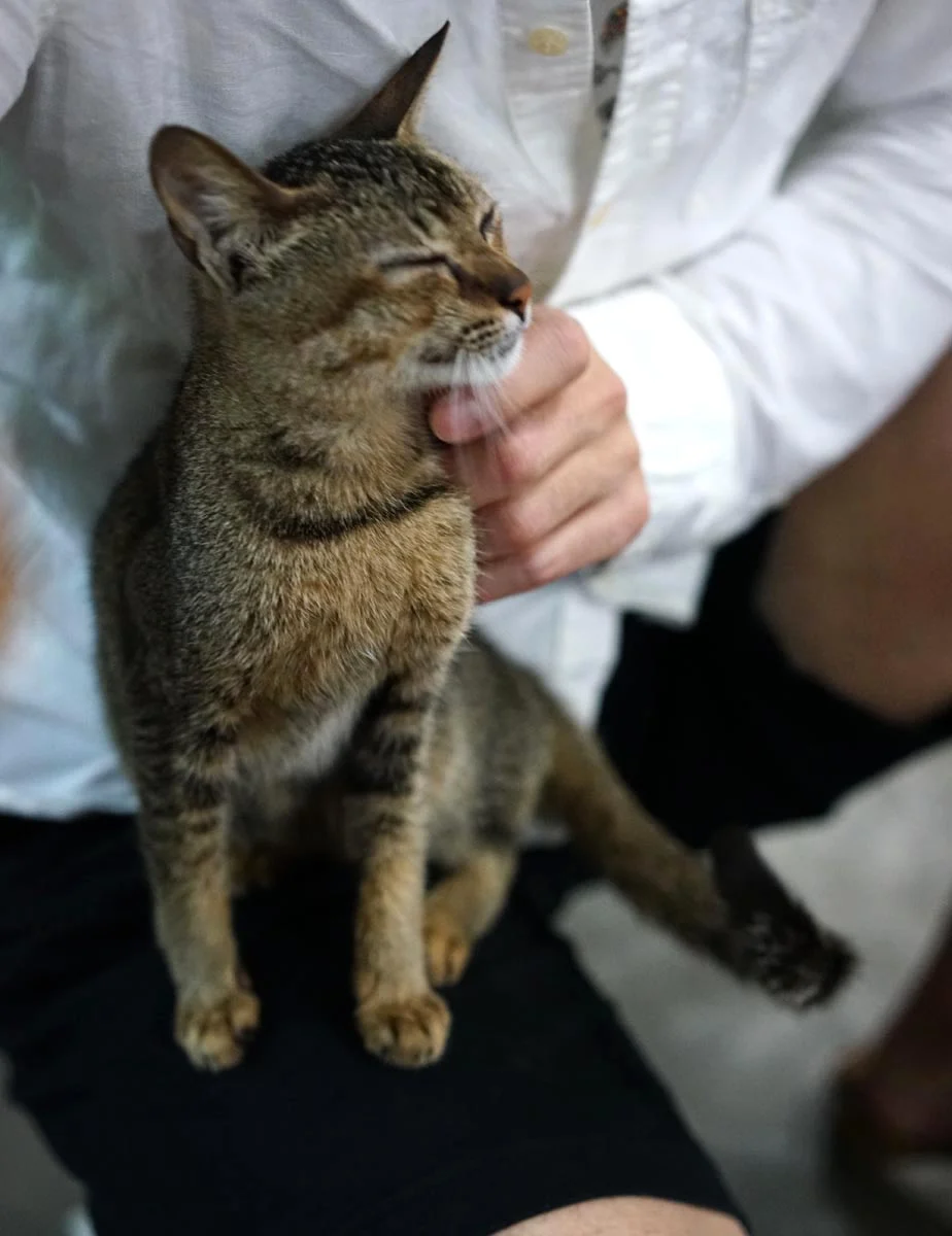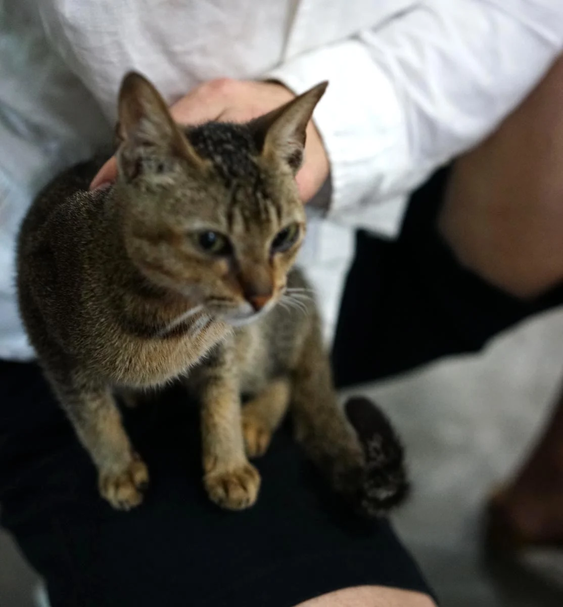 이 아이는 동남아시아에 사는 고양이들이 대체로 그렇듯 얼굴은 갸름하고 몸이 매우 작으며 가냘프다. 우리나라 길냥이들은 사람 소리만 들려도 도망가기 바쁜데 내 옆에 앉아 나를 빤히 바라보는 녀석을 보고 있자니 고맙기도 하고 뭔가 애틋한 생각이 든다.