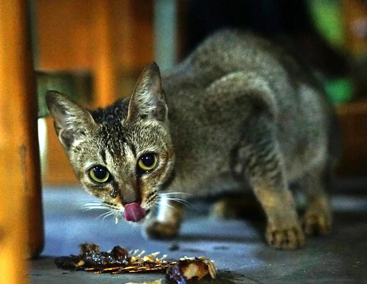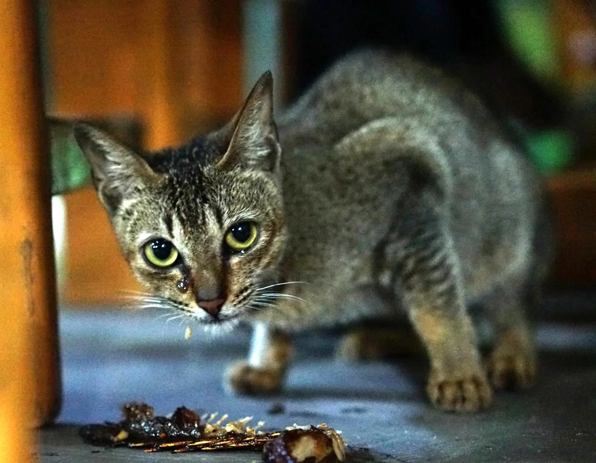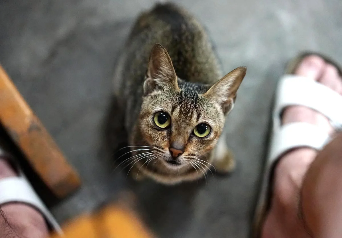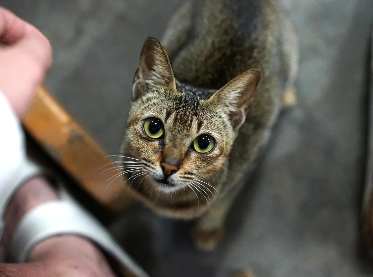 이 아이는 동남아시아에 사는 고양이들이 대체로 그렇듯 얼굴은 갸름하고 몸이 매우 작으며 가냘프다. 우리나라 길냥이들은 사람 소리만 들려도 도망가기 바쁜데 내 옆에 앉아 나를 빤히 바라보는 녀석을 보고 있자니 고맙기도 하고 뭔가 애틋한 생각이 든다.