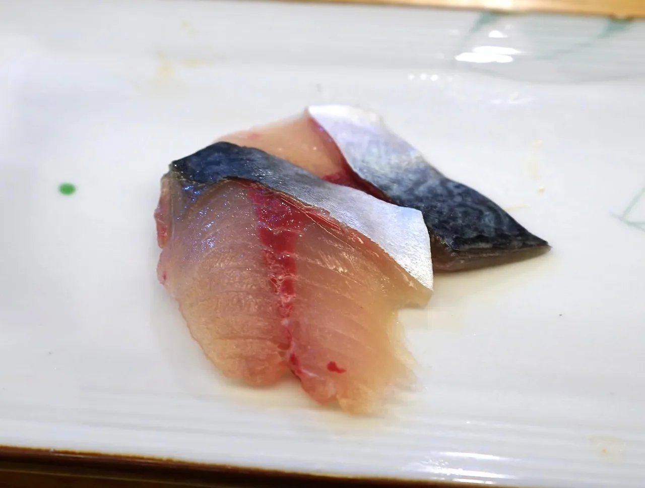 사바(고등어). 매우 고소한 고등어 특유의 향이 잘 느껴진다. 선도가 조금이라도 떨어지면 비린 맛이 강하게 나는 생선인데 전혀 비리지가 않다.