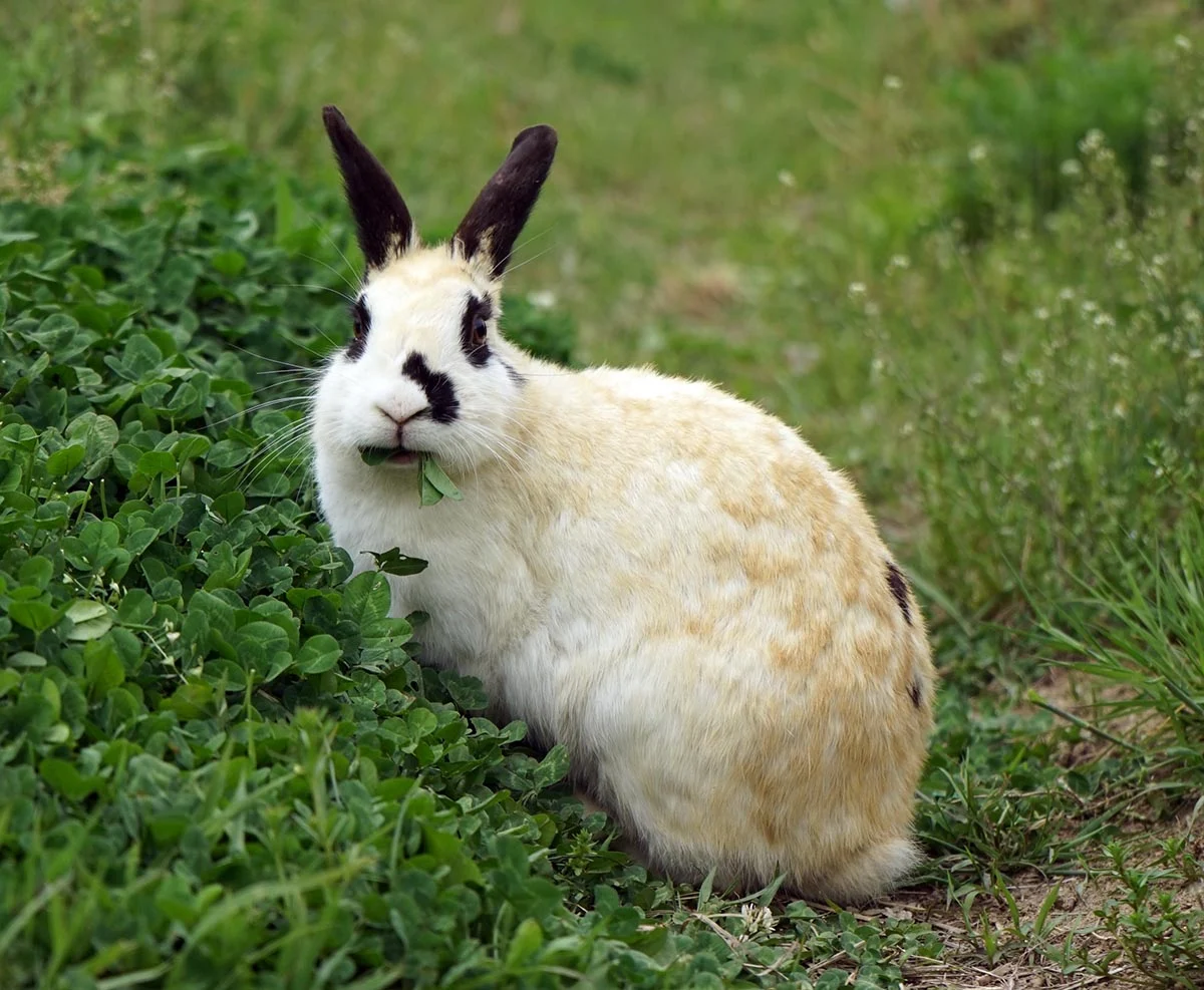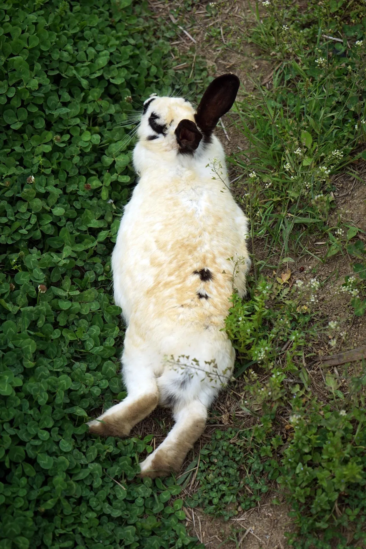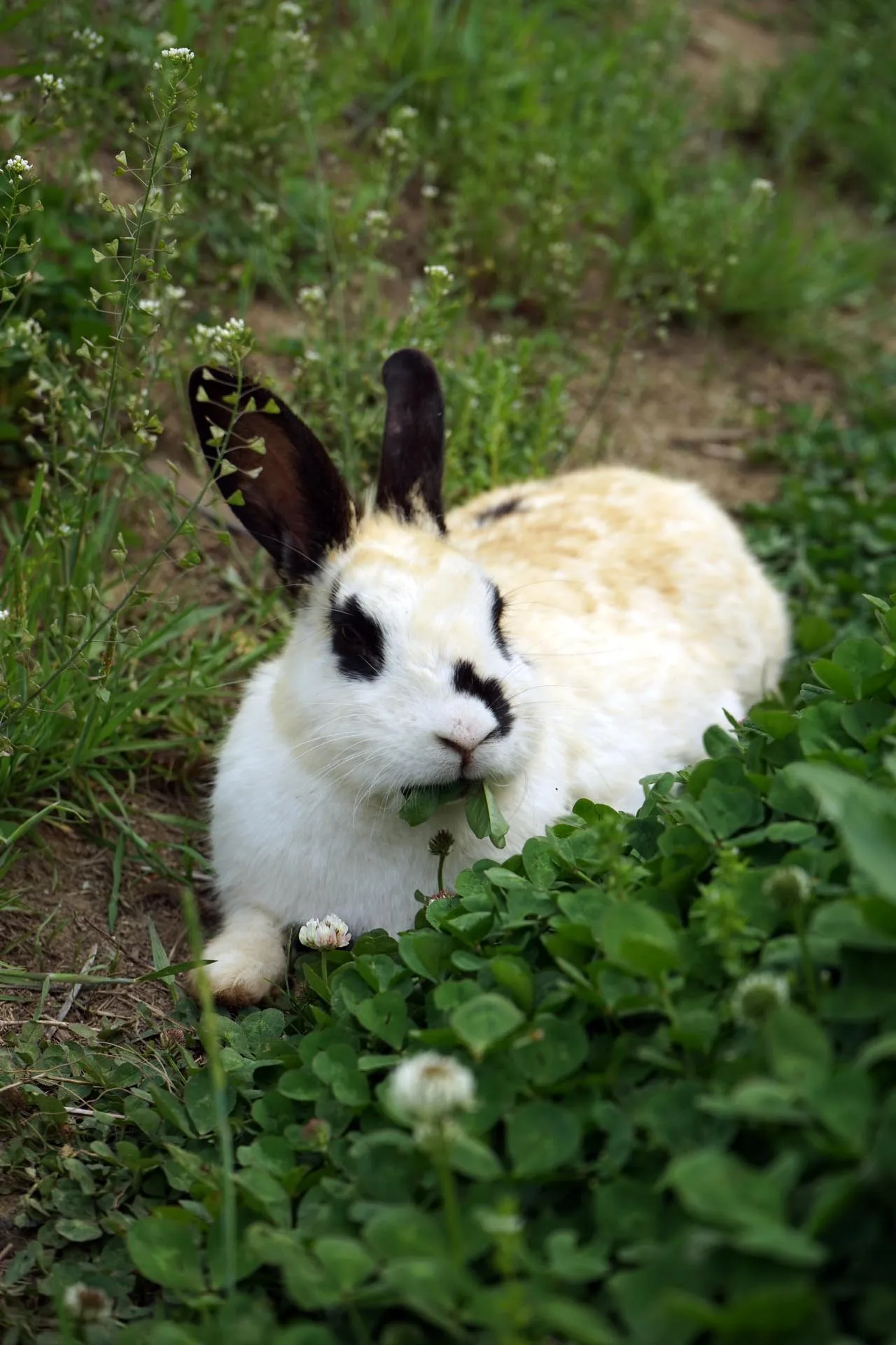 꽤 가까이 다가갔는데도 무심히 풀을 뜯고 있던, 얼룩이 매력적인 토끼였다.