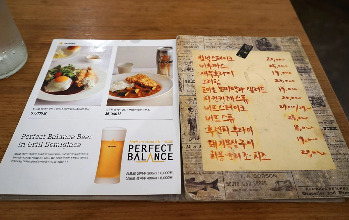 잠시 기다리니 자리를 세팅해 주셨다. 일단 대표 메뉴인 함박스테이크를 주문.
