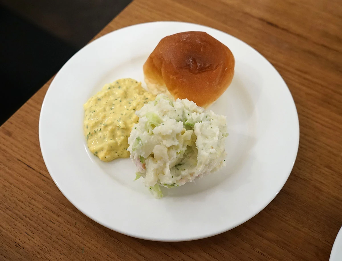 모닝롤과 포테이토 샐러드, 그리고 에그 마요네즈. 배가 고팠는데 애피타이저의 양이 좀 돼서 좋았다. 에그 마요네즈의 고소함이 기억에 남는다.
