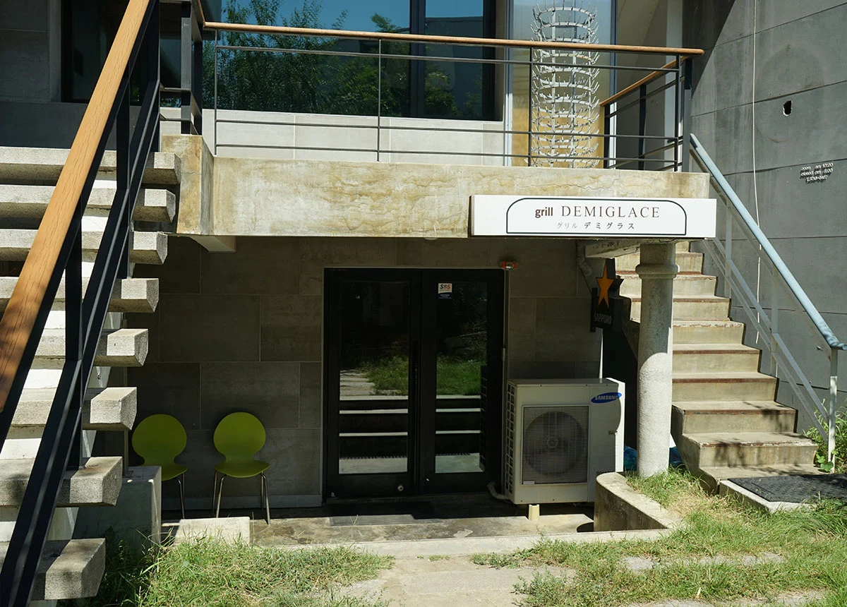 9월의 어느 날, 함박스테이크와 비후까스, 새우후라이 등이 유명하다는 그릴 데미그라스를 찾았다. 이 아담하고 조용한 식당은 종로구 팔판동에 있는데, 왼쪽에 있는 청와대 가는 길이 아닌 아래로 내려가는 오른쪽 길로 조금 들어가야 나온다.