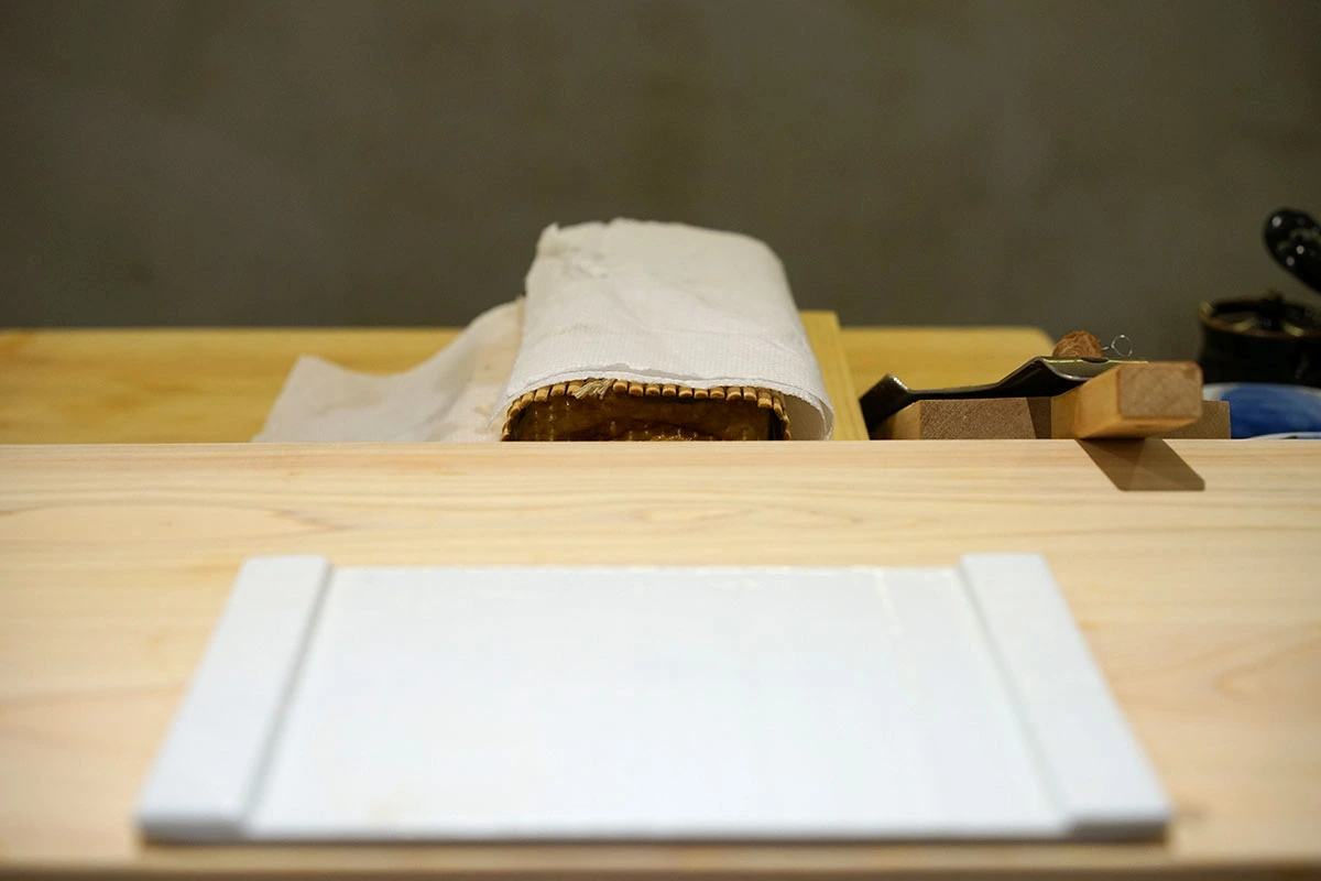 점심에는 런치 오마카세(6만 원)를 낸다. 기물들이 은근히 예쁘다. 사진을 찍겠다고 양해를 구했는데 셰프님 표정이 별로 좋지 않아 보였다. 살짝 걱정을 했는데 원래 과묵하신 스타일이라 내가 오해를 한 듯 하다.
