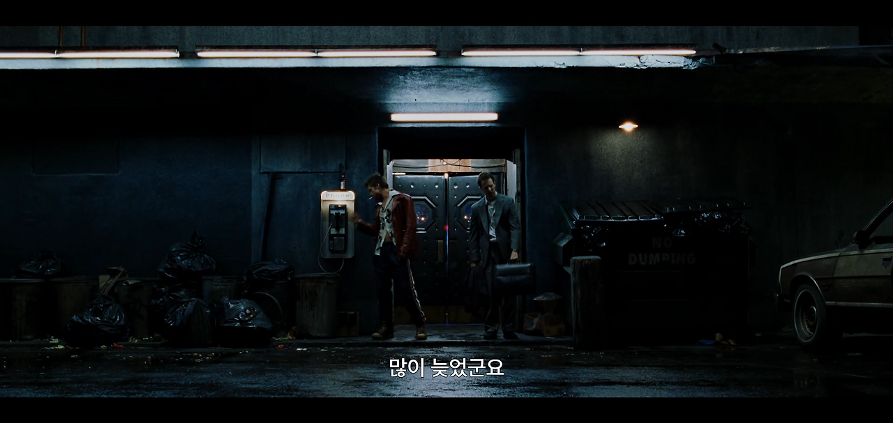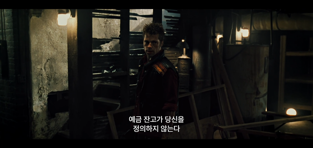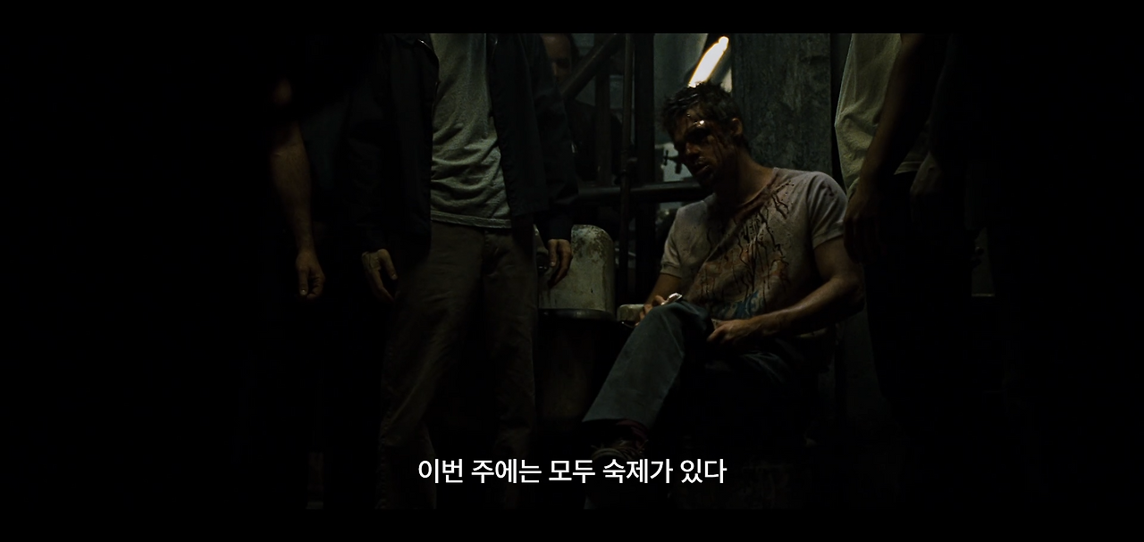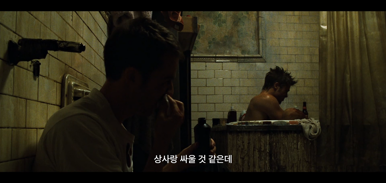 파이트 클럽에서 그림자와 음영을 통해서 불완전한 인물들의 모습과 불안한 상황을 잘 표현하였다.