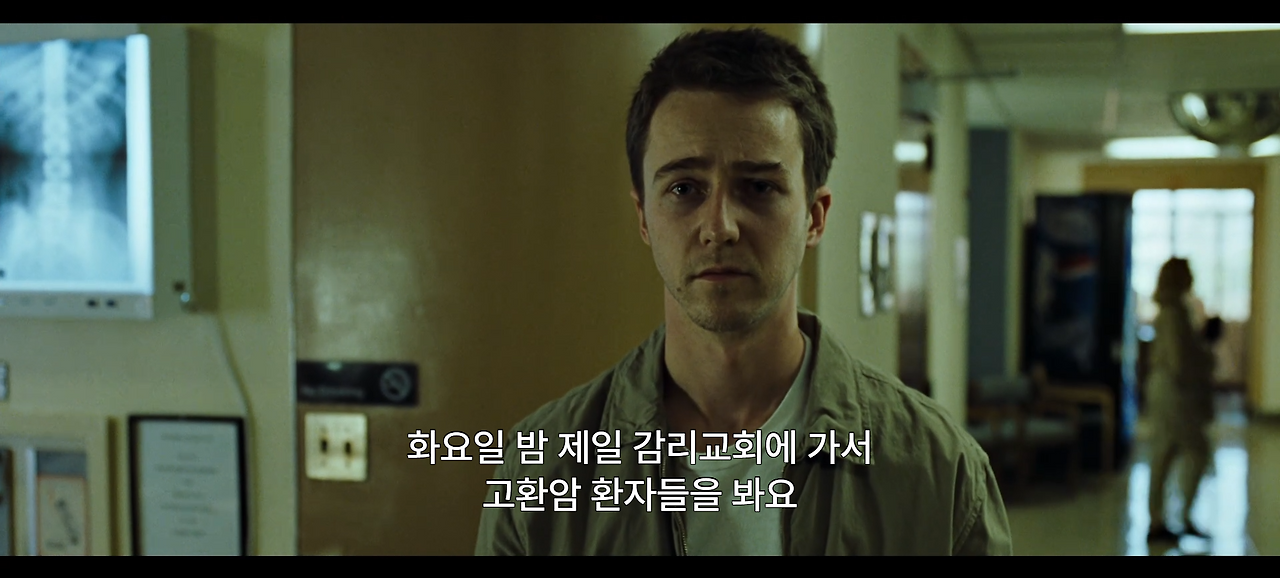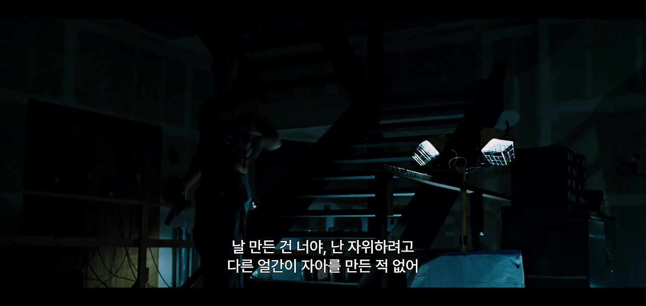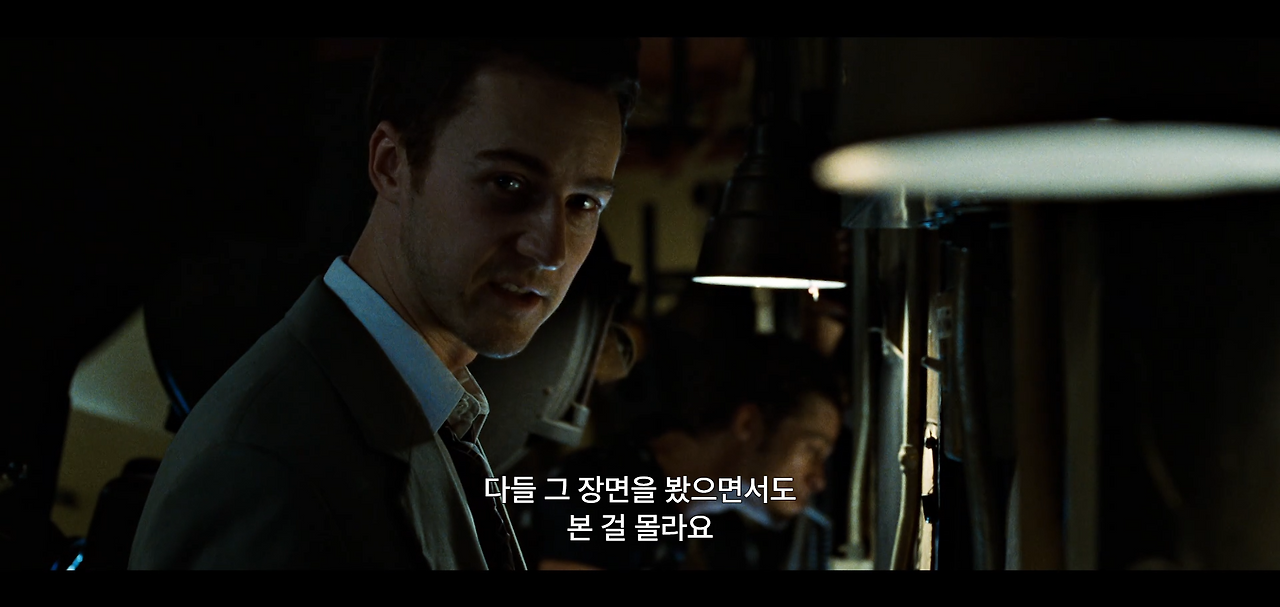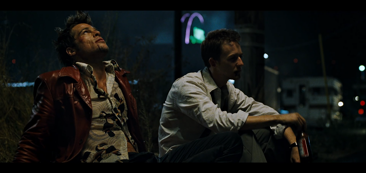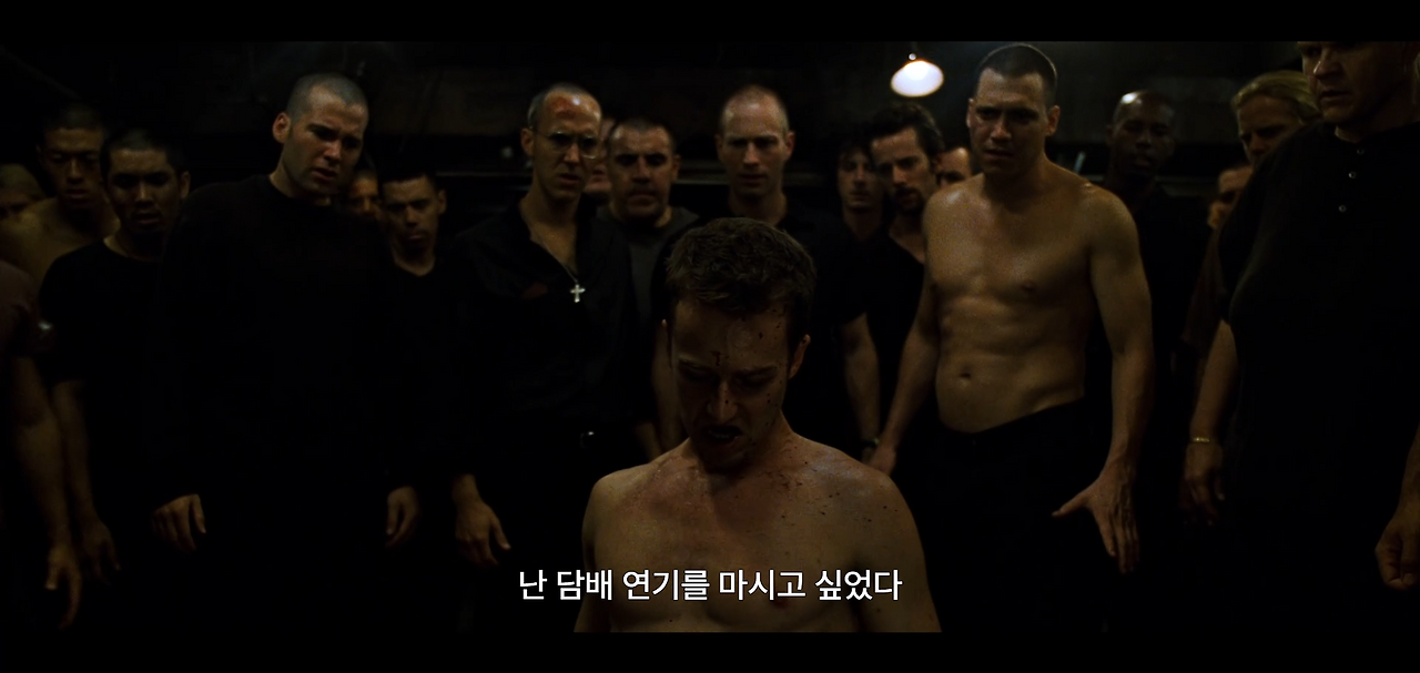 파이트 클럽에서 그림자와 음영을 통해서 불완전한 인물들의 모습과 불안한 상황을 잘 표현하였다.