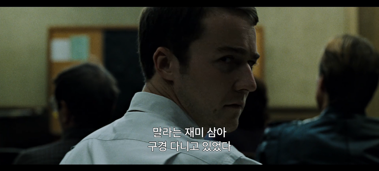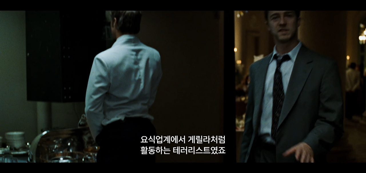 잭과 타일러는 동일인물이기에 주변인물들이 동일인물로 대하지만 잭은 제3자 같은 대사의 디테일에 다시 한번 소름이 끼치도록 계산적이다.