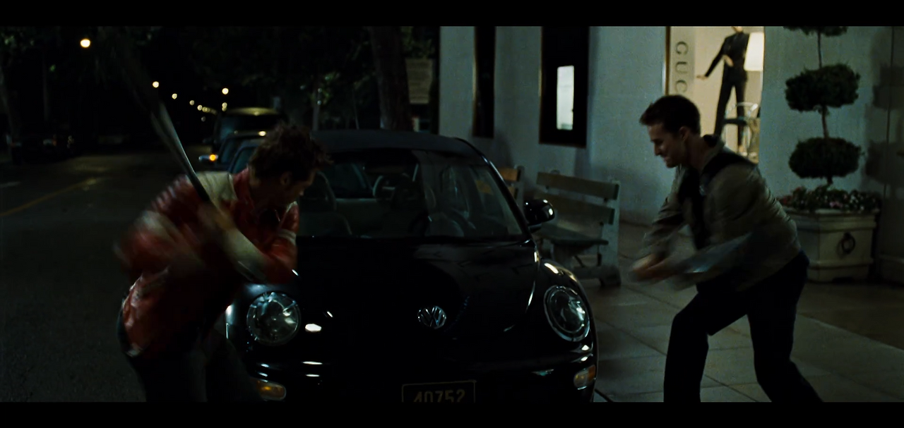 처음에 잭과 타일러와 만나는 과정에서 불안정적인 만남을 상징한다. 갑작스러운 만남과 잭의 불안한 상태를 보여주었다. 이후 파이트 클럽에서도 서로 싸우는 장면에서도 불안정한 정도의 극대화를 잘 표현했다.