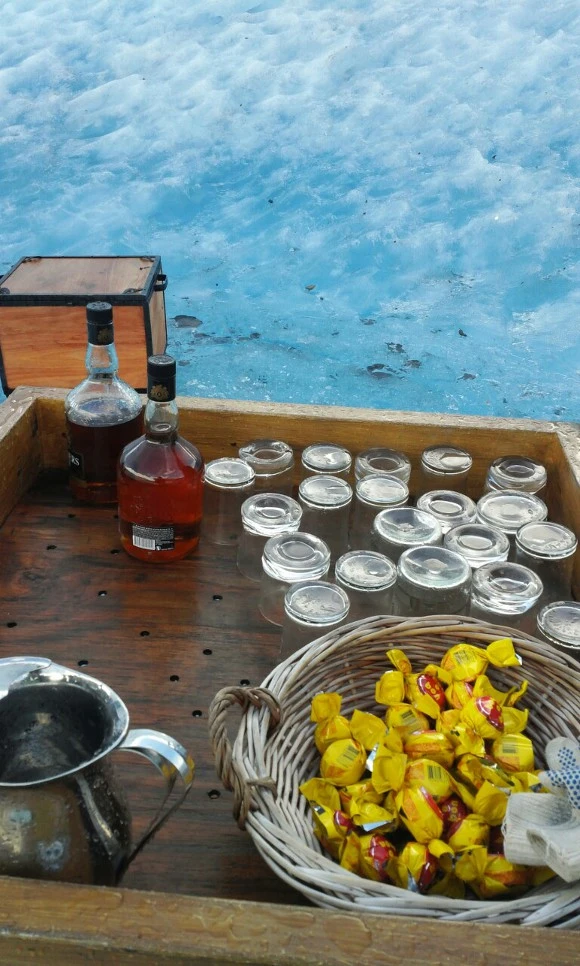 우리는 빙하를 더 가까이에서 보기 위해 전망대에서 다시 밴을 타고 선착장으로 내려가 배에 올랐다. 빙하를 담고 있는 호수는 불투명해서 수면 안쪽이 보이지 않았다. 차가운 빙하가 호수 물을 슬러시 상태로 얼린 탓일 것이다. 배가 빙하 가까이로 다가가자 빙하의 단면은 거대한 빙벽으로 우리 앞에 다가섰다. 그 빙하를 색으로 표현하고 싶었지만 막상 내가 알고 있는 하늘색 계열의 색상 이름이 얼마 되지 않아서 저 신비로운 빙하를 제대로 표현할 수 없다는 사실이 슬퍼졌다.