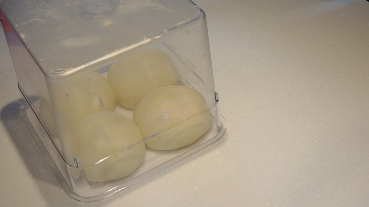 물양에 따라 반죽 총량이 조금씩 달라질 수 있지만 230g을 기준으로 분할하되 4개 모두 균일한 무게인 것인 것이 좋다. 하지만 소량차이나는 경우 너무 완벽하게 무게를 나누지 않아도 된다. 예를 들면 230g, 236g 이렇게 나눠진 것을 또 작은 조각을 잘라 233g씩 나눌 필요까진 없다는 말이다. 반죽 덩어리는 최소한의 상처만 남는 것이 좋다. 많이 만질수록 가스가 죽고, 반죽의 피로도가 높아진다. 조심한다고 반죽을 조몰락할수록 반죽이 죽는다 생각하고 최소한의 터치로 과감히 커팅한다.
