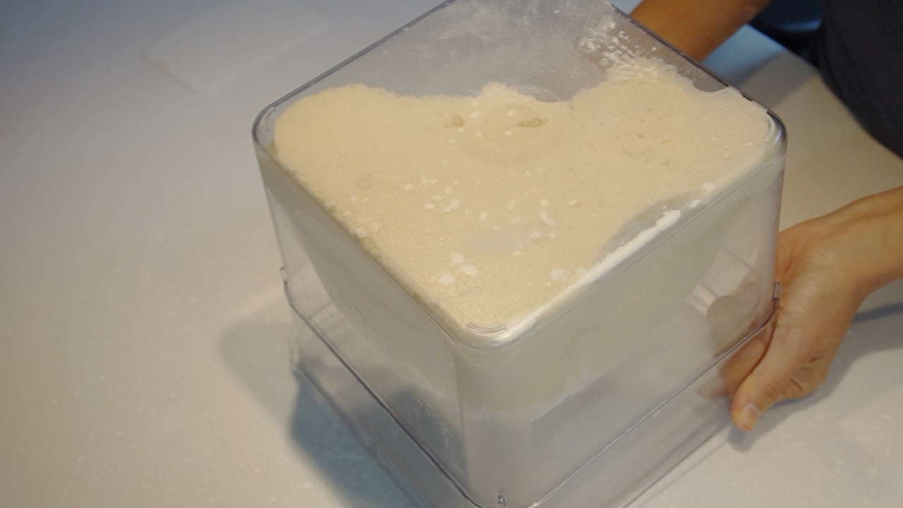 과발효된 반죽은 힘이 없어 주저앉아 버리는 특징이 있으니 반죽의 발효정도를 확인할 때 체크해 보자.