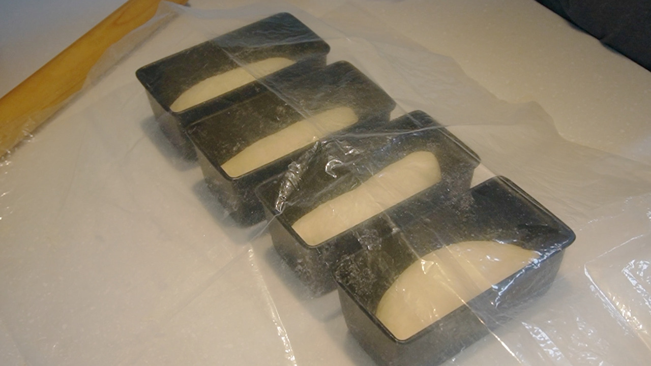 돌돌말면서도 폭이 길어지기 때문에 조금 짧아야 틀에 넣었을때 꽉끼지 않고 여유가 있다. 발효할 공간이 약간은 있어야 빵이 구워졌을때 양옆의 조직감이 살아 있어 보송한 식감을 살릴 수 있다.